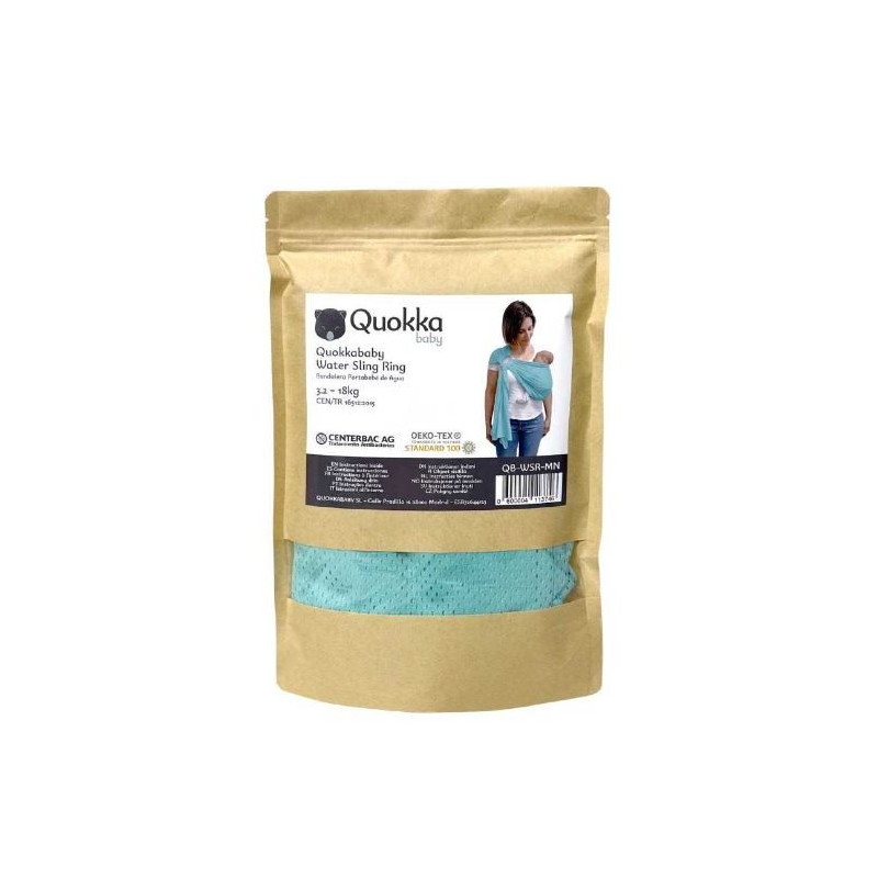 La bandolera de agua Quokkababy es ideal para el porteo en verano porque se puede utilizar también en el agua gracias a su secado rápido.