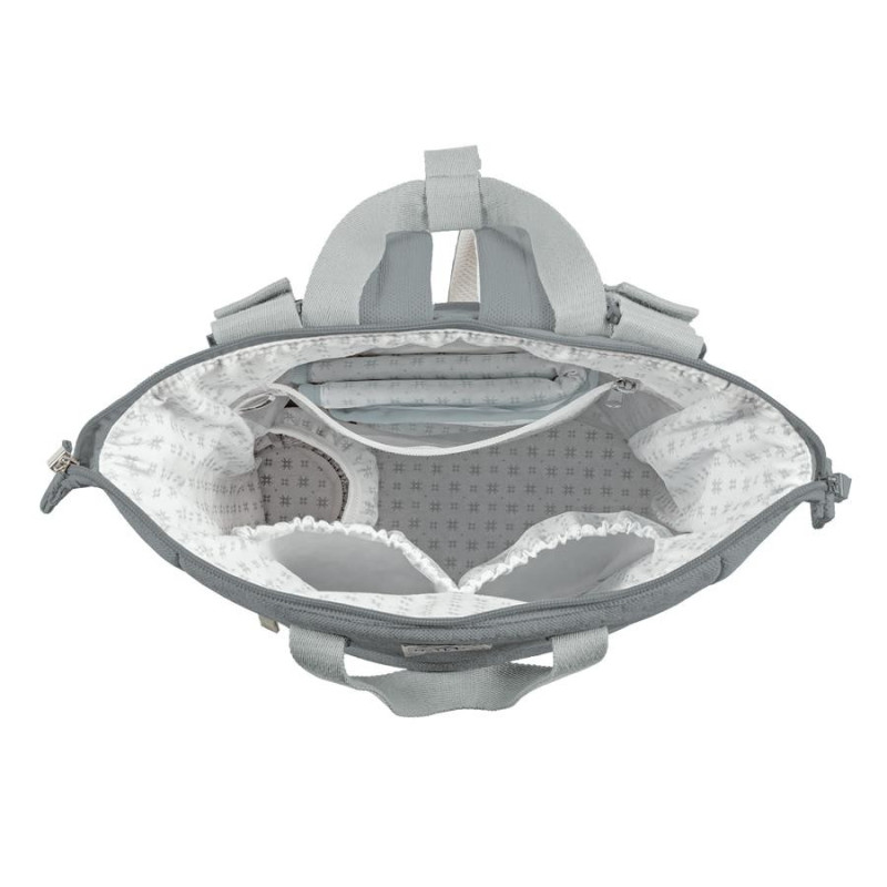 Tiene gram cantidad de bolsillos para guardar todo lo necesario para tu bebé. Incluye un cambiador y un bolsillo plastificado para almacenar la ropa mojada y aislar la humedad del resto de la mochila.