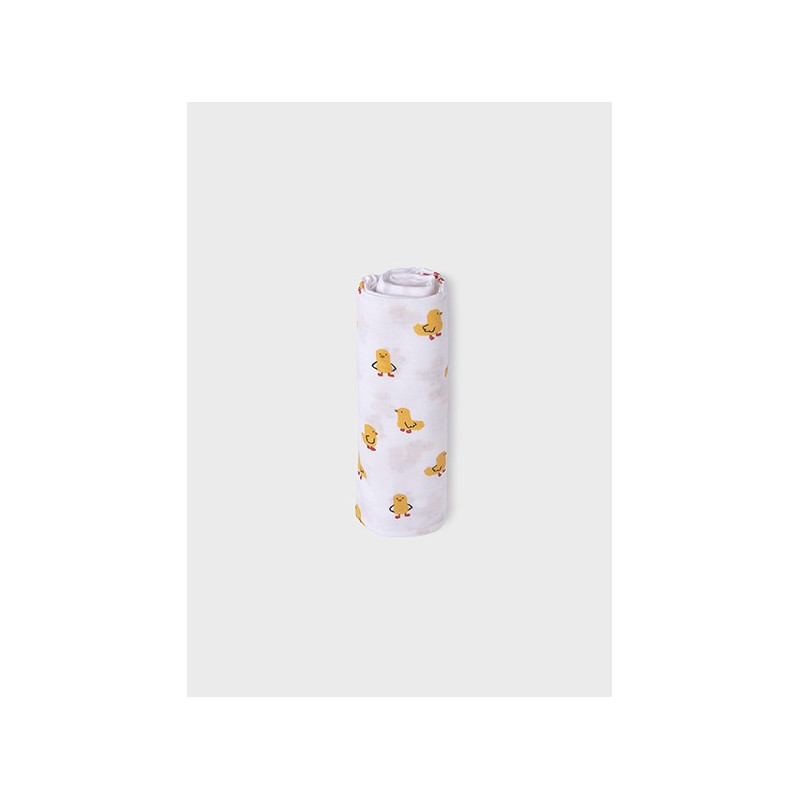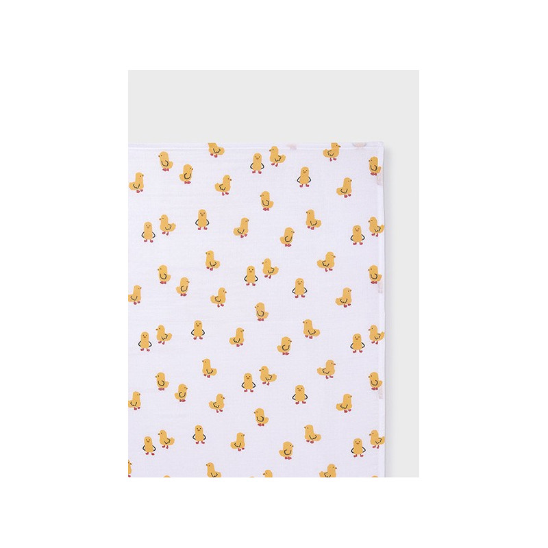 Muselina de tejido tipo gasa con estampado de pollitos.