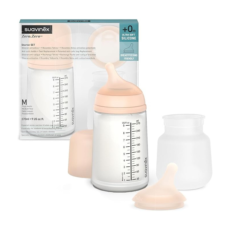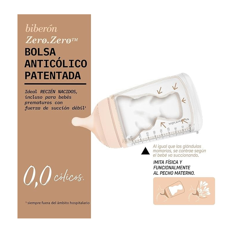 La colección Zero Zero de Suavinex está especialmente diseñada para bebés que toman el pecho. Reproduce fisiológicamente las glándulas mamarias durante la succión.