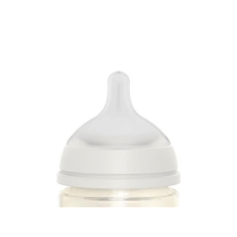 La tetina de silicona de alta calidad presenta una pequeña abertura, permitiendo el paso controlado de una mínima cantidad de líquido, ideal para el delicado sistema digestivo de los recién nacidos.