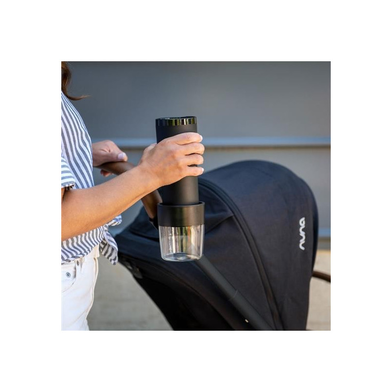 Tapa fácil de abrir y cerrar. La tapa se abre al presionar un botón y se bloquea en posición de apertura, para evitar que caiga y golpee al niño en la cara mientras bebe.