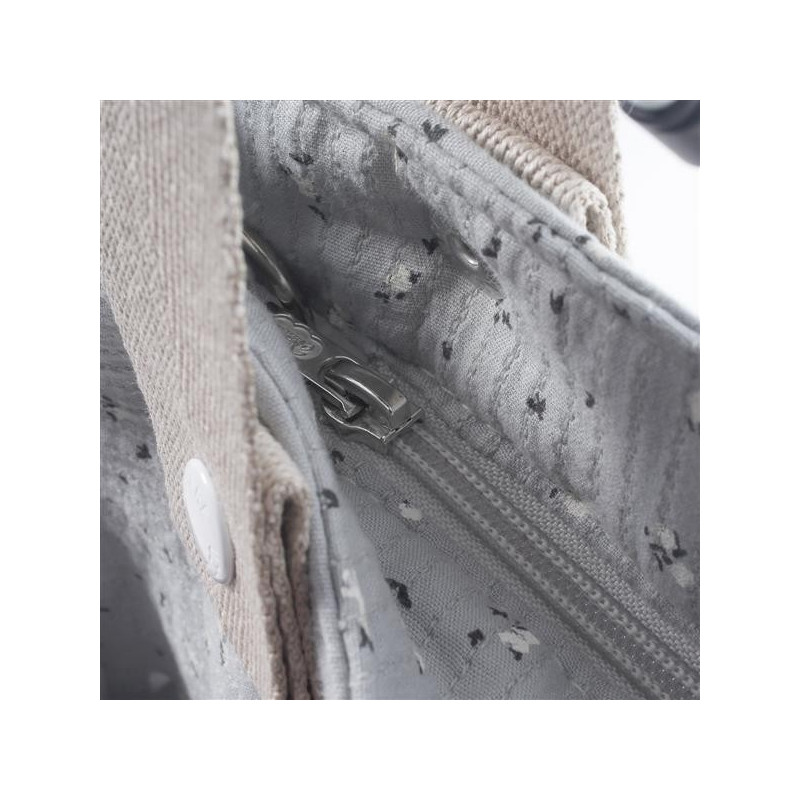 Muy elegante y práctica para llevar todo lo necesario para ti y tu bebé. Cierre con cremallera. Lavable a mano o a máquina