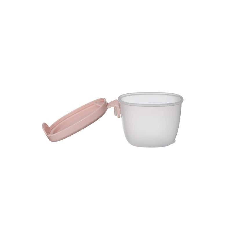- La tapa con bisagra única se adhiere de forma segura al recipiente evitando su pérdida.