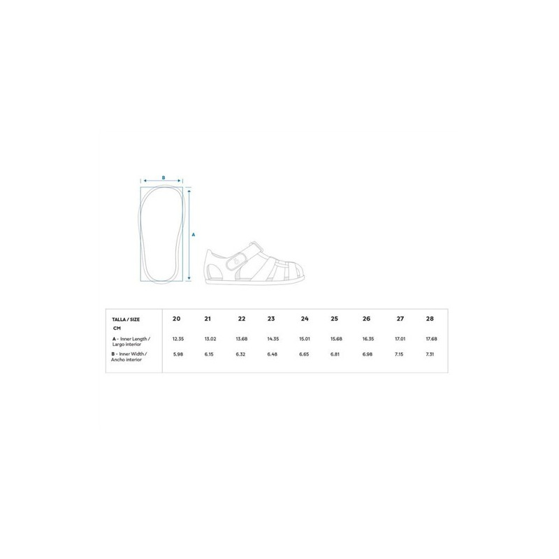 ATENCIÓN: Las medidas de la tabla corresponden a este modelo en concreto y de la suela interior del zapato. Puedes compararla con la medida del pie de tu peque