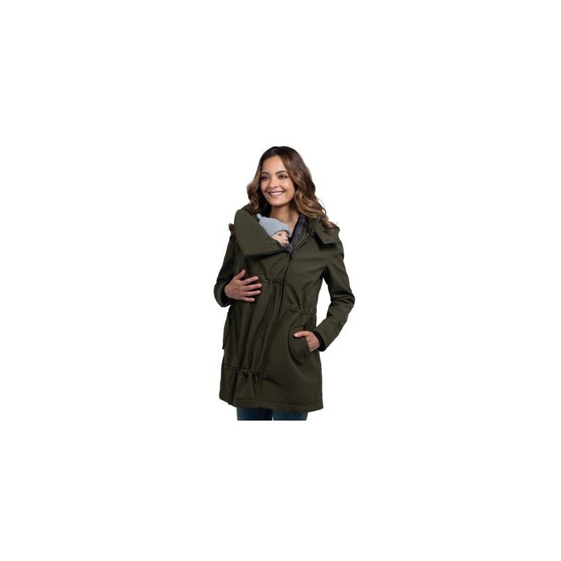 El abrigo porteo Wombat Shell es 4 en 1: uso como abrigo premamá, abrigo porteo delante y espalda, y normal. Fabricado en tejido softshell, impermeable y cortavientos.