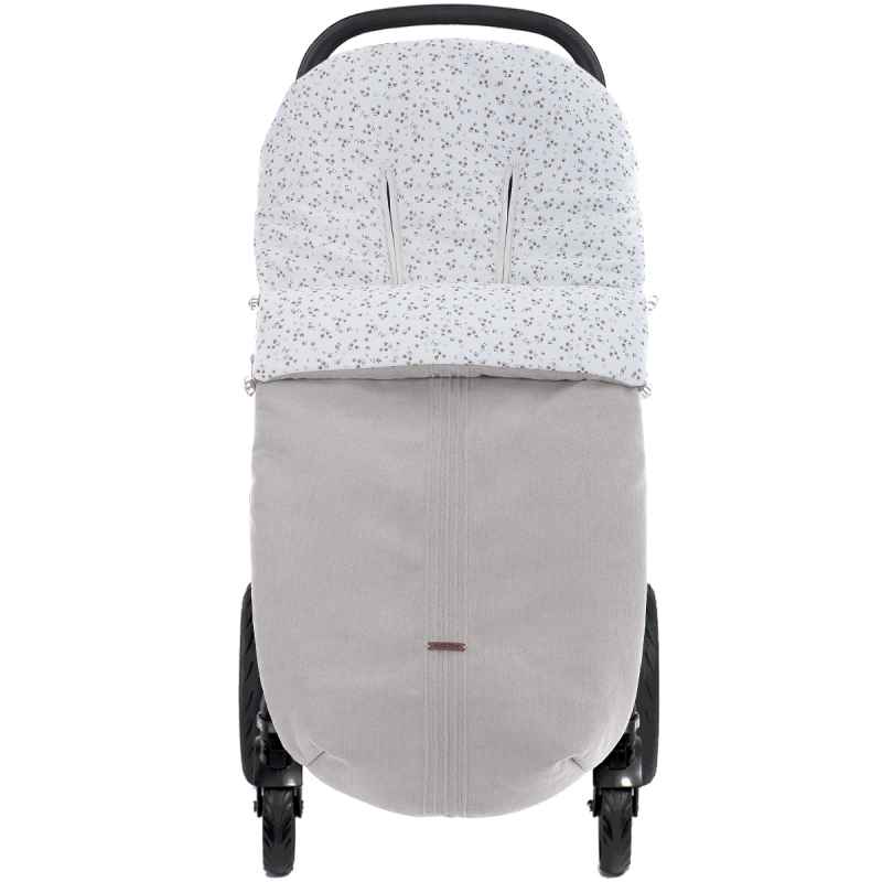 Saco de silla universal con apertura total y ojales para arnés, ideal para pasear con tu bebé. Fabricado en España con tejidos suaves y certificado Oeko-Tex 100.