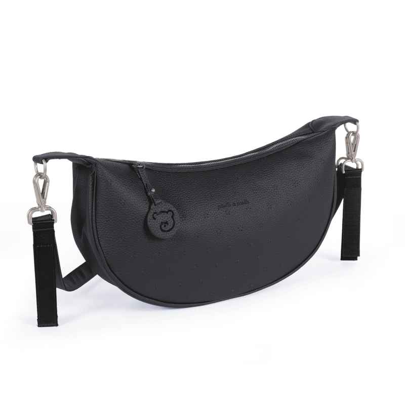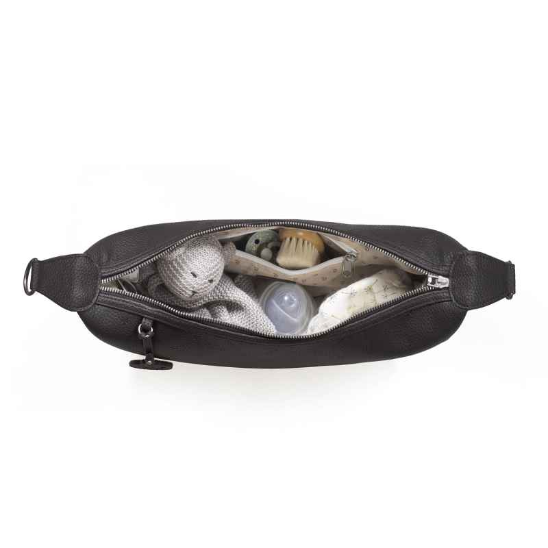 A pesar de su tamaño compacto, ofrece una organización inteligente. Su compartimento principal permite llevar lo esencial (pañales, toallitas, chupete, móvil, llaves o un pequeño juguete), incluyendo un bolsillo interior con cierre de cremallera para mantener tus objetos seguros y accesibles.