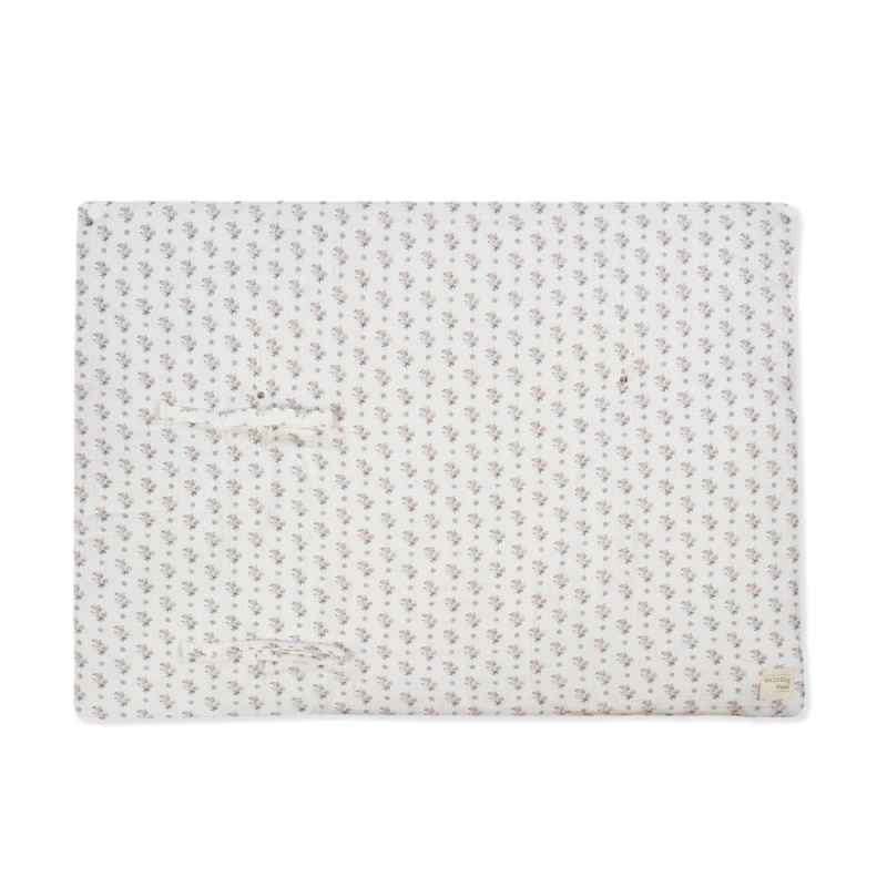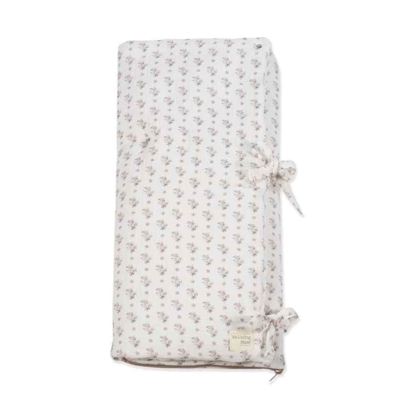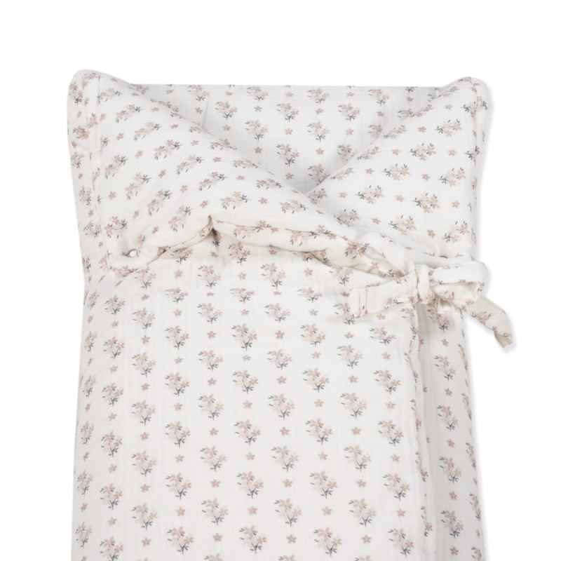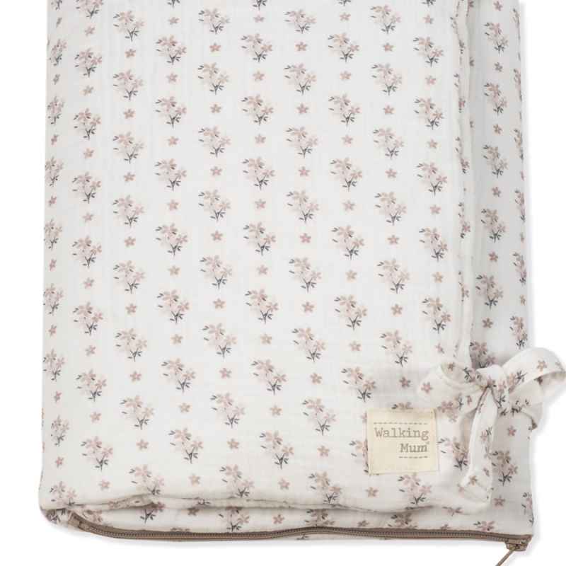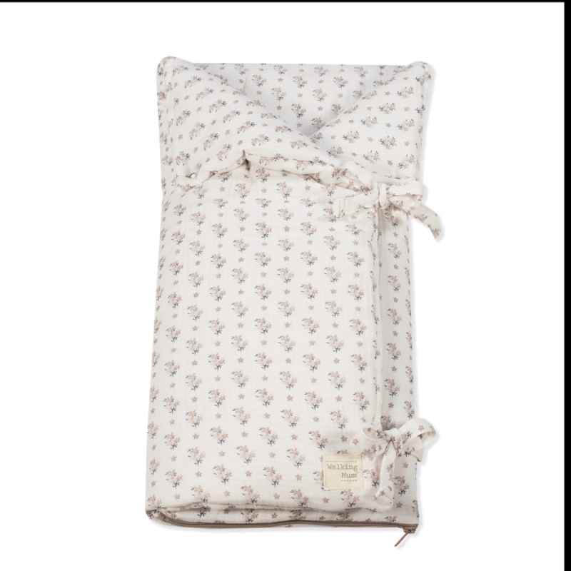 Saco arrullo Botton de muselina 100% algodón con estampado floral. Ideal para recién nacidos, convertible en manta. Práctico, suave y fácil de lavar.