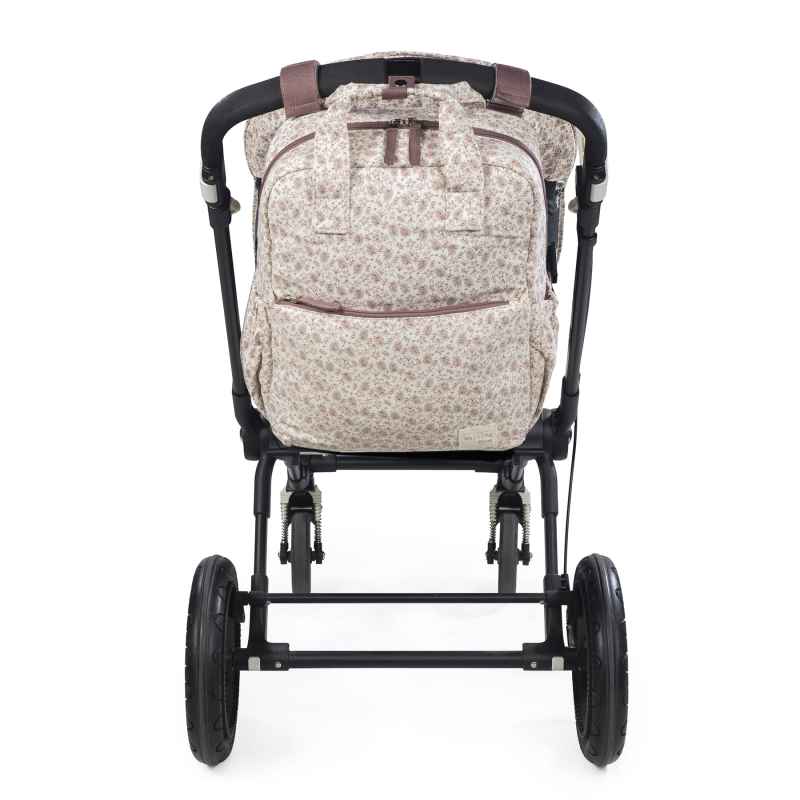 La mochila cambiador Gala Cerise de Walking Mum, con su encantador estampado floral, combina a la perfección estilo y funcionalidad para acompañarte en cada paseo con tu bebé.