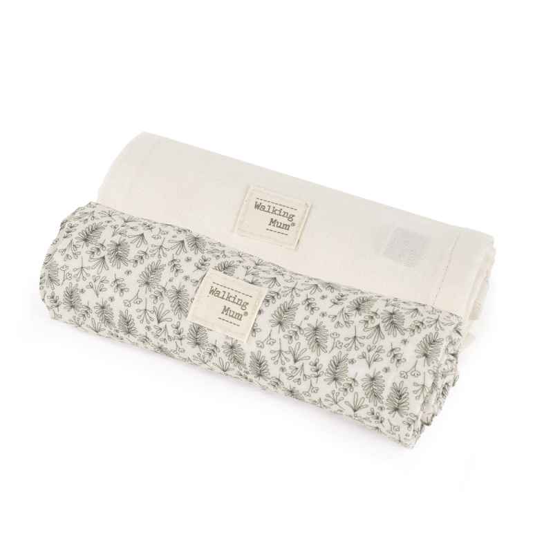 El pack de dos muselinas Gala Mint de Walking Mum, con un diseño estampado y otro liso, es un imprescindible para el cuidado del bebé. Están confeccionadas en una suave y transpirable mezcla de 70% bambú y 30% algodón, lo que las hace delicadas con la piel del recién nacido y perfectas para múltiples usos: arrullo, mantita ligera, cubierta de lactancia, cambiador o protector para el carrito.