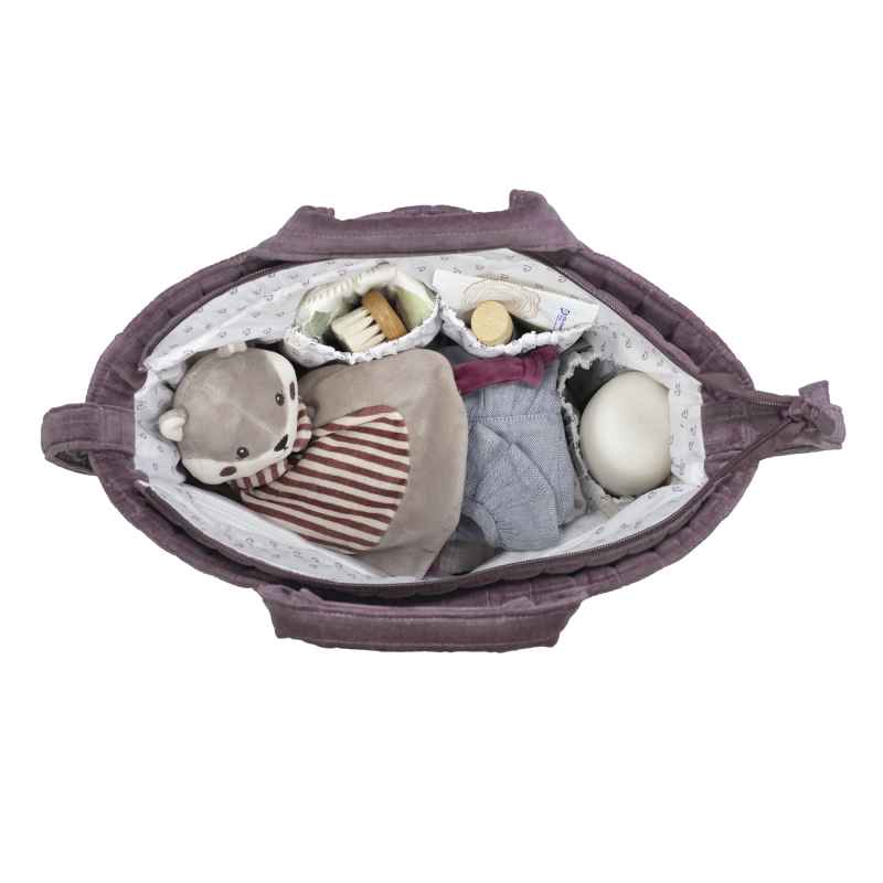 Perfecta para usar como bolso maternal o bolsa de hospital, dispone de un forro interior con varios compartimentos, un bolsillo térmico para biberones y otro plastificado para ropa húmeda. Además, incluye cambiador y está confeccionada con materiales seguros, libres de ftalatos, colorantes azoicos y sustancias nocivas.