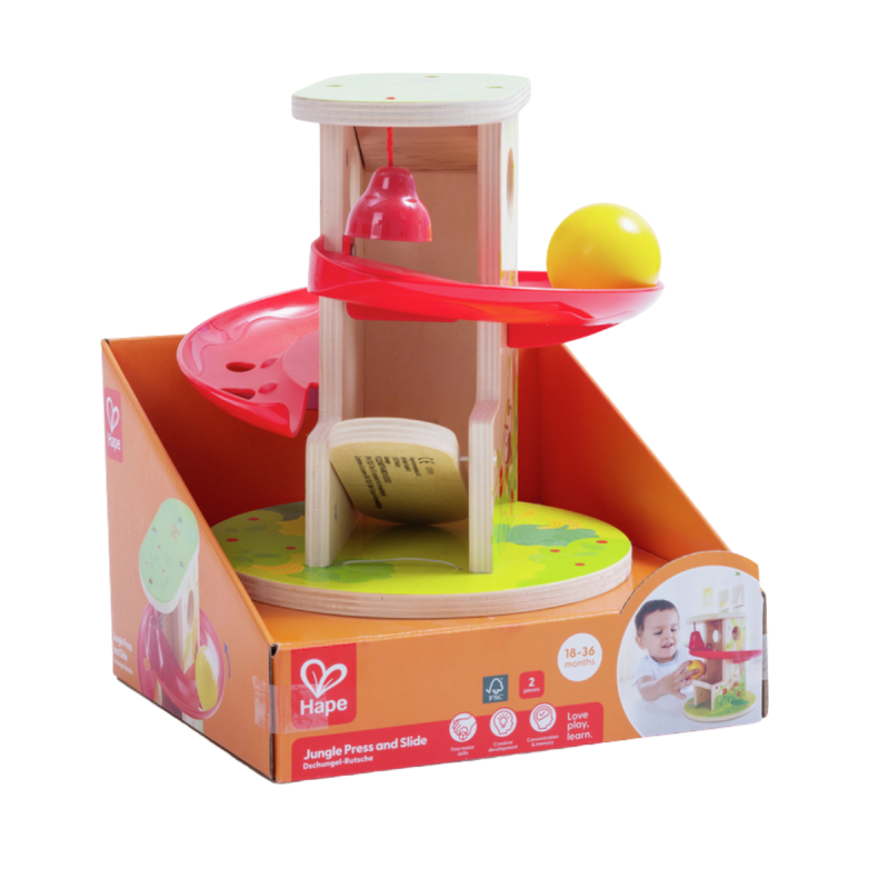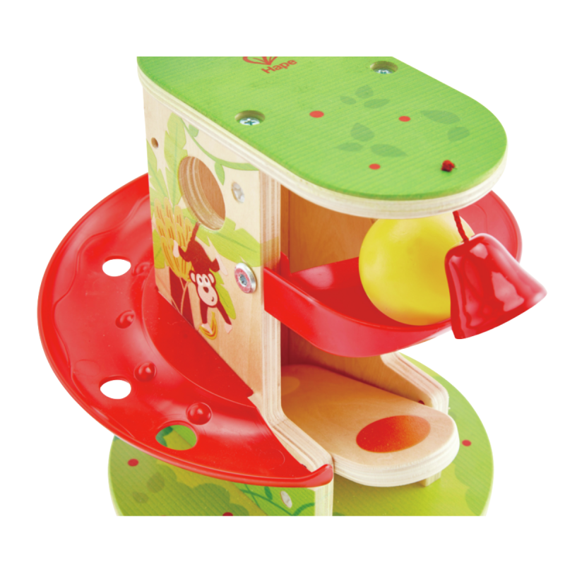 Precioso tobogán de madera que simula un árbol. En él, tu pequeñín podrá hacer deslizar la bola de madera hasta llegar al suelo. Luego, si presiona la palanca, la bola volverá a subir a la parte superior del árbol para comenzar de nuevo.