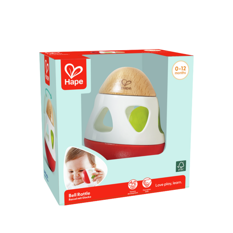 Empuja este sonajero para alejarlo y... ¡volverá como un búmeran! Además, contiene una campanilla en su interior, ideal para añadir ritmo y diversión a las horas de juego de los pequeñines.