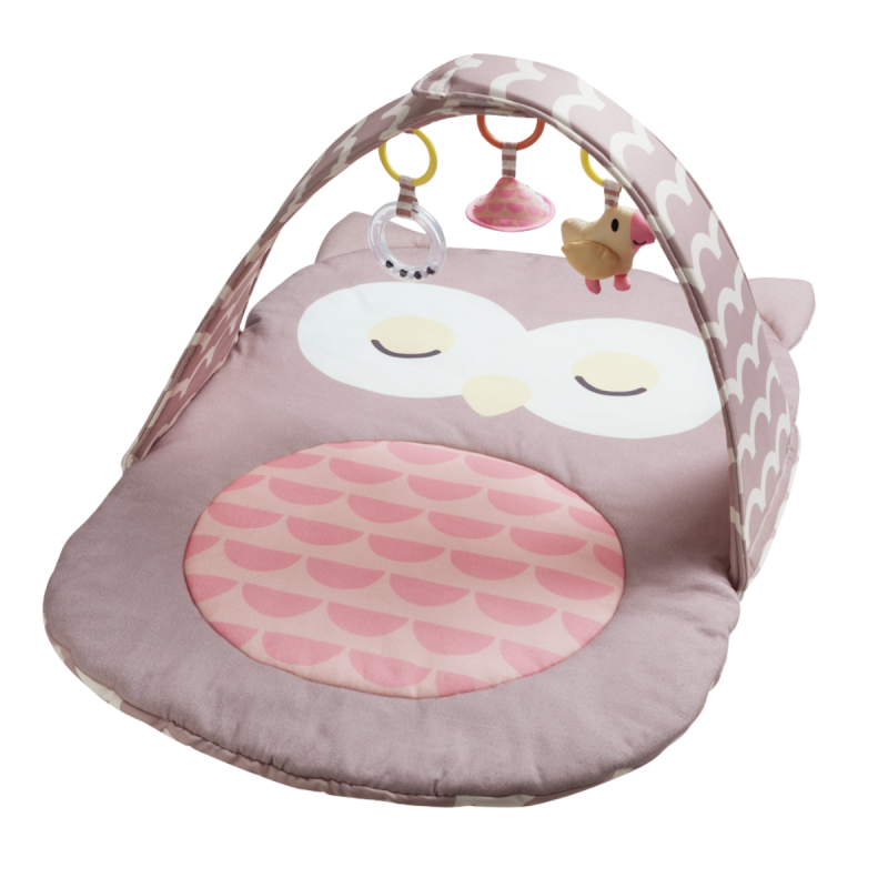 El búho Sina es un arco de juego y una guarida de peluche todo en uno. La manta, suave y con un grueso acolchado, está hecha de algodón y en delicados tonos pastel. Los pequeños están abrazados de forma protectora en el búho dormido; los accesorios a juego, como un sonajero, un espejo y un pato tintineante, proporcionan diversión de juego.