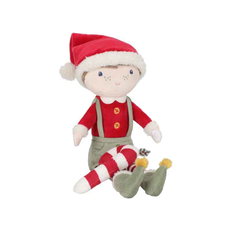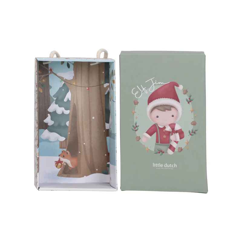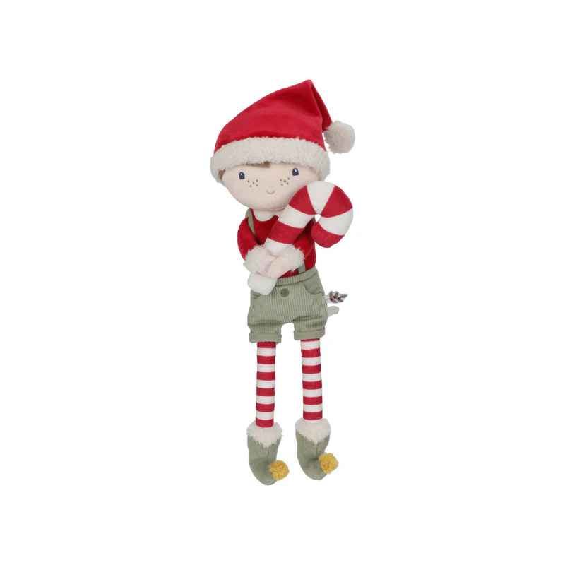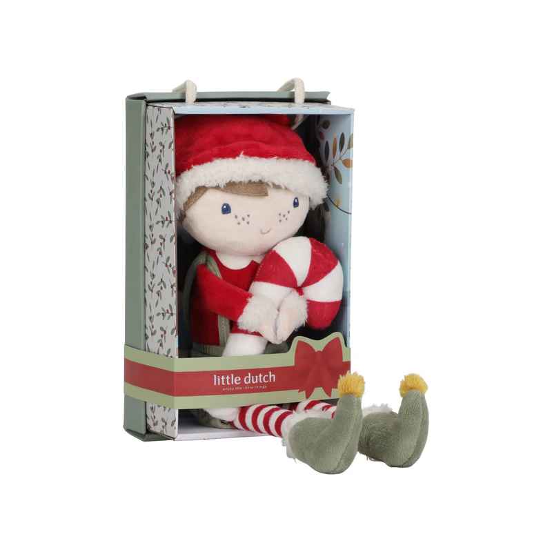 ¡Jim, el muñeco navideño, está listo para las fiestas! Con su cuerpo suave, su alegre gorro rojo y sus manos con velcro, sujeta con firmeza su bastón de caramelo. Jim es increíblemente tierno y viene en una preciosa caja de regalo, ideal como regalo de Navidad.