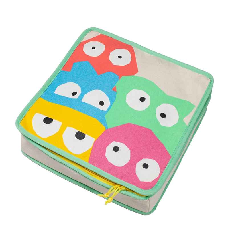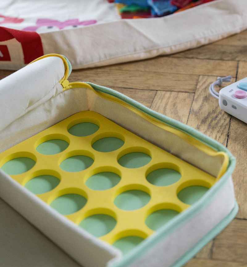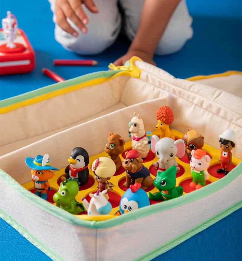 El organizador Ta-da permite mantener ordenados los productos FABA. Cuenta con un compartimento para guardar FABA Cuentacuentos o FABA+ y otros accesorios, como los auriculares y la funda protectora, y un compartimento que puede albergar hasta 15 entre Personajes y Discos Sonoros. El organizador está fabricado en algodón y se cierra con una cremallera para mantener siempre protegidos y organizados los Productos Sonoros.