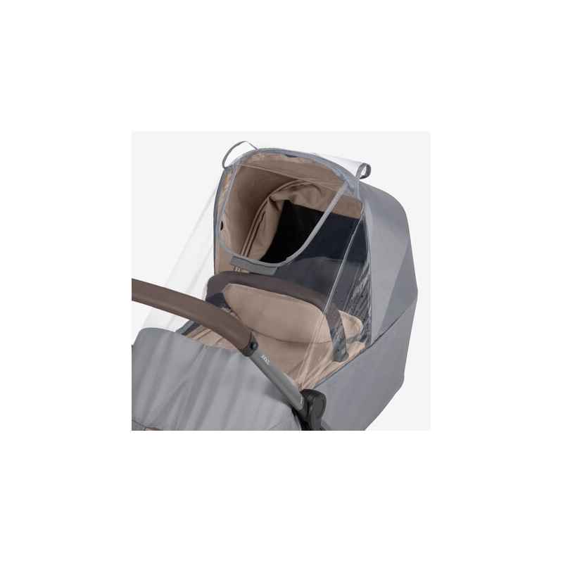 Plástico de lluvia transparente y resistente para el capazo Joolz Aer 2, diseñado para proteger al bebé del agua, el viento y las inclemencias del tiempo. Ajuste perfecto, fácil de colocar y con visibilidad total, ideal para paseos seguros incluso bajo lluvia intensa.