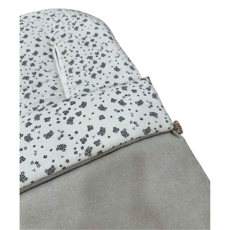 Fabricado con materiales certificados Oeko-Tex Standard 100, libres de sustancias nocivas, este saco combina seguridad, confort y durabilidad. Forma parte de una colección con accesorios a juego, todos diseñados y confeccionados en España con los mejores tejidos.