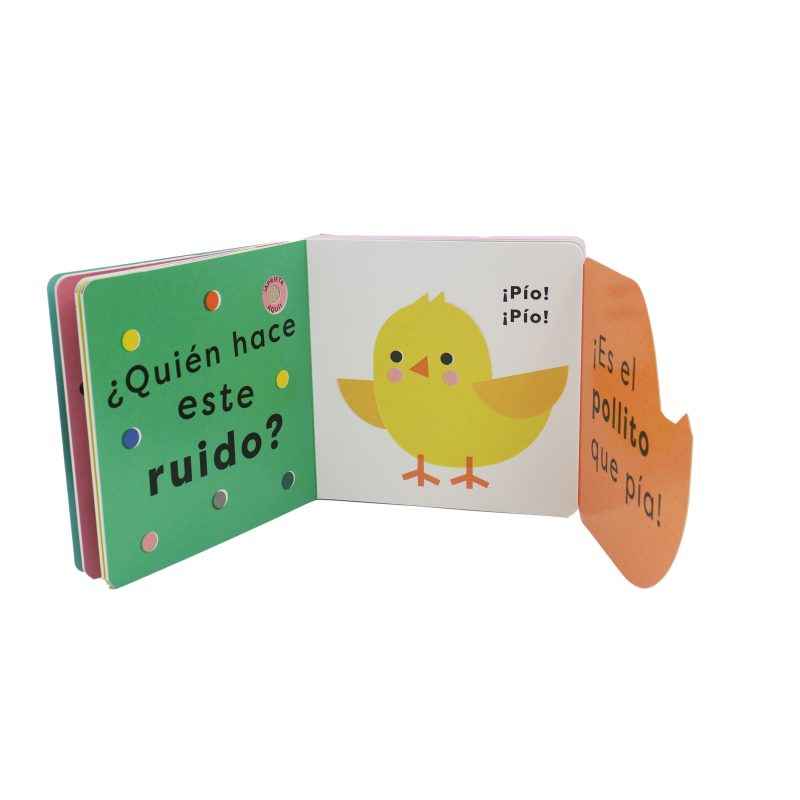 Un nuevo título de la colección ¿Quién hace este ruido? con solapas y sonidos en todas las páginas, y un espejo como sorpresa final. Después de escuchar el sonido de cada página, los niños y niñas pueden jugar a adivinar qué animal se esconde bajo las solapas. ¡El patito, la cabra, el conejo y el pollito no tendrán secretos para los más pequeños de la casa!