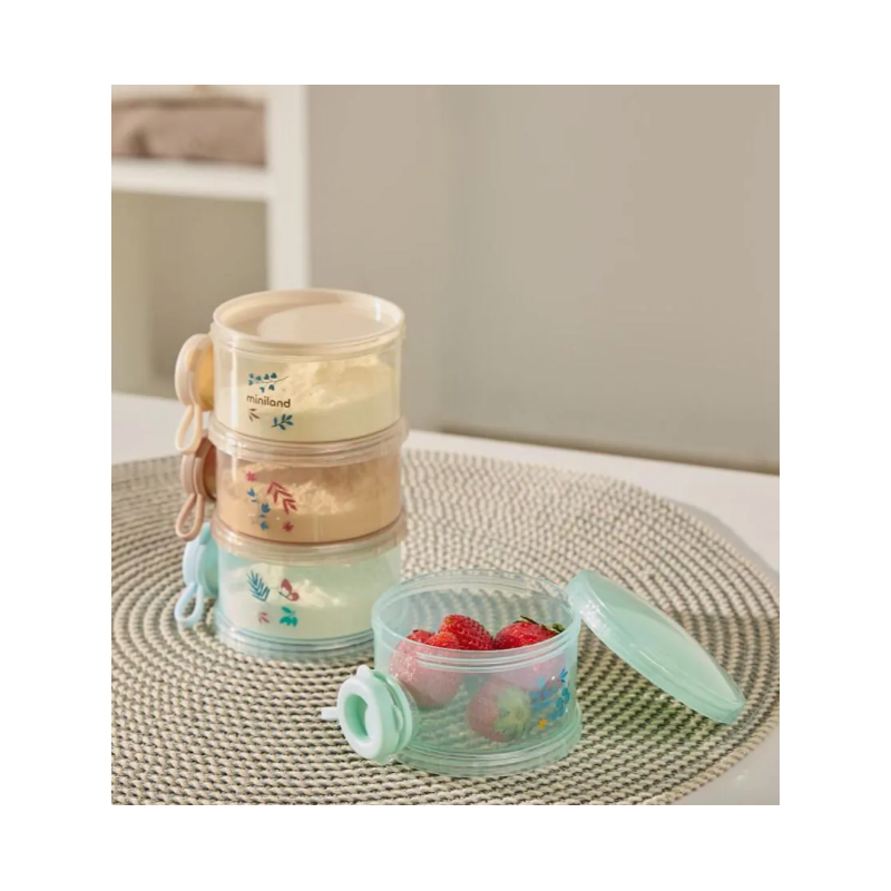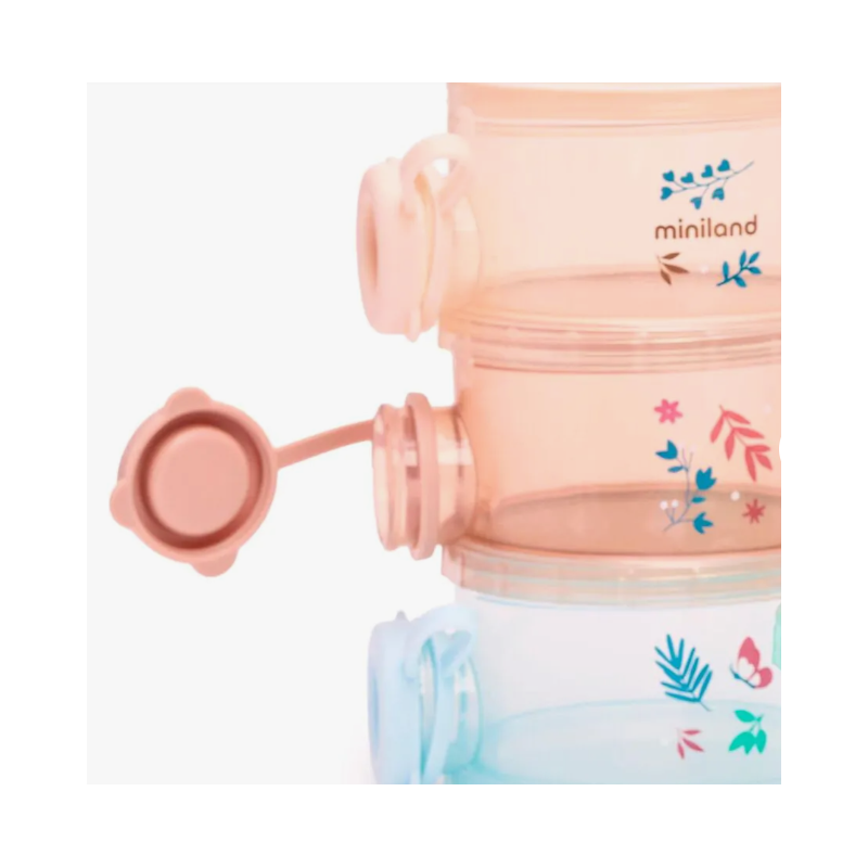 Milky On The Go Dreamland te facilita preparar las tomas de tu bebé estés donde estés. Gracias a su apertura lateral, puedes verter la leche en polvo de forma rápida y cómoda, sin desmontar todo el dispensador. Compacto, práctico y seguro, es el aliado ideal para salidas y viajes con tu peque.