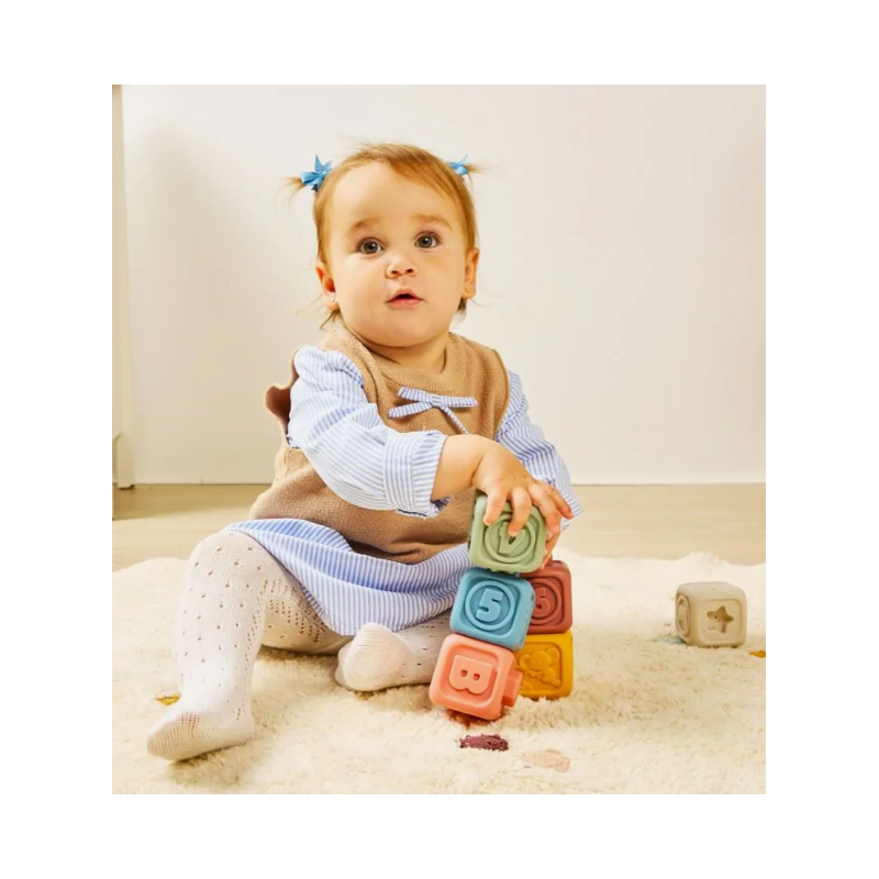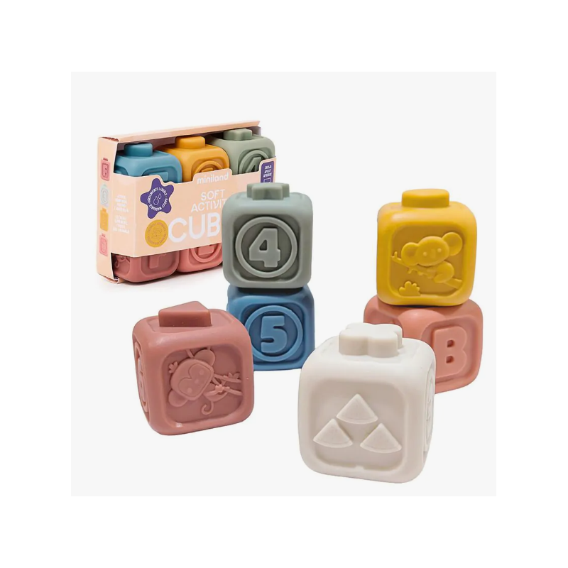 Un mundo entero de exploración para bebés. Descubre los Soft Activity Cubes de Miniland, unos cubos blanditos y sensoriales que convertirán cada momento de juego en una experiencia estimulante.