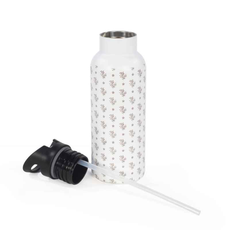 Doble pared de aislamiento conserva la temperatura de las bebidas por más tiempo. Acero inoxidable, material resistente, higiénico y libre de BPA. Pajita suave y segura para los niños, facilita el consumo. Tapa anti-fugas, evita derrames accidentales. Capacidad 500 ml, ideal para llevar la hidratación necesaria. Estampado divertido y moderno con motivos de la colección Poppy de Walking Mum. ¡La botella perfecta para mantener a tu peque hidratado con estilo! Lavar antes del primer uso. Se recomienda lavar a mano para prolongar la vida útil del diseño. No apta para microondas ni congelador.