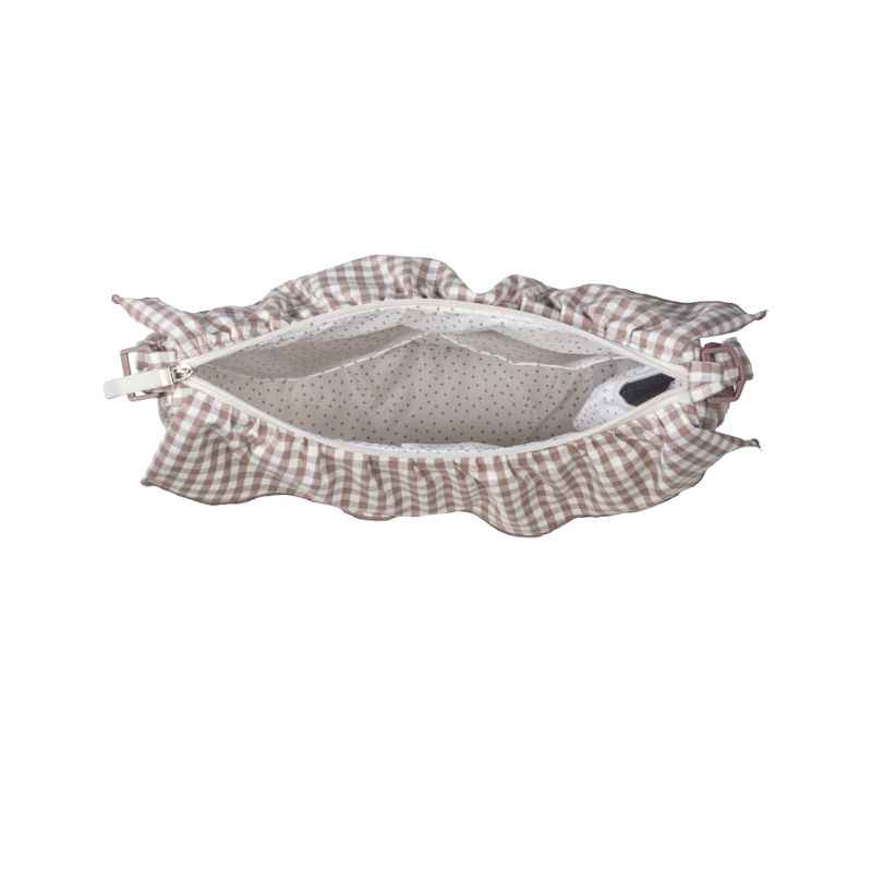 Funcional, ligera y con mucho estilo: la bolsa ideal para paseos con tu bebé. La bolsa tipo góndola con correa cruzada de la colección Praliné Vichy Matcha de Walking Mum es la opción perfecta para quienes buscan una bolsa maternal ligera, compacta y con gran capacidad de organización. Su diseño curvado tipo góndola, es perfecto para llevar como bolsa bandolera. Aporta un toque moderno ideal para llevar tanto colgada al hombro como sujeta al carrito del bebé.
