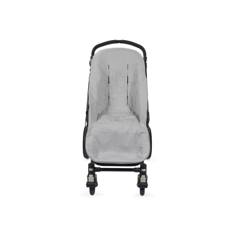 Funda Little Bloom Vichy gris de Pasito a pasito en tejido de algodón 100% muy suave ideal para cubrir la silla de paseo provista de saco. Está diseñado en el respaldar con una capa de tejido en material transpirable que aísla la humedad y evita la sudoración excesiva del bebe haciendo el paseo más confortable.