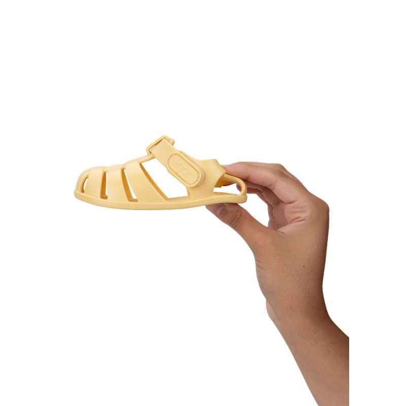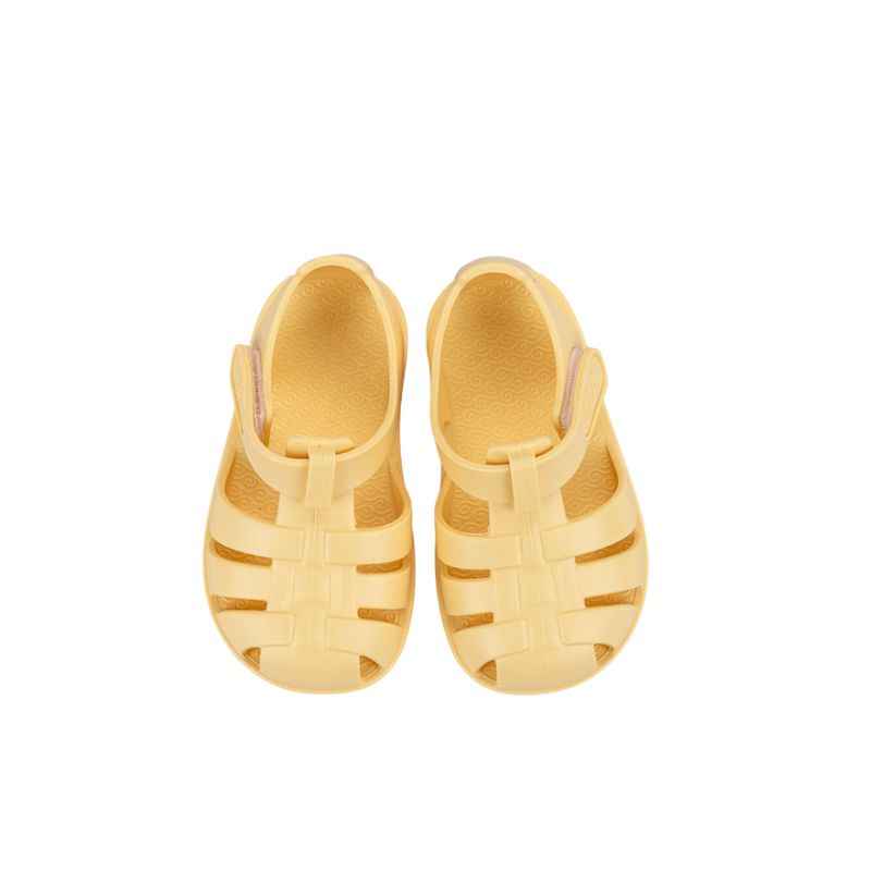 Cangrejera diseñada en concepto barefoot medium, cero drop, flexible y blandita, fabricada con al menos un 50% de pvc reciclado libre de ftalatos y cierre adherente.