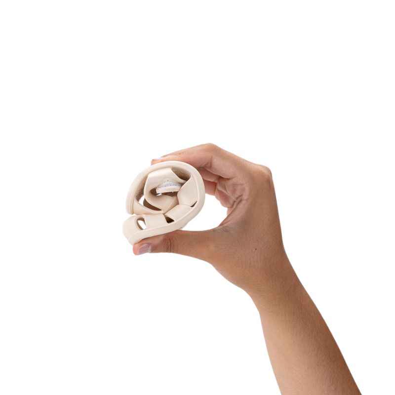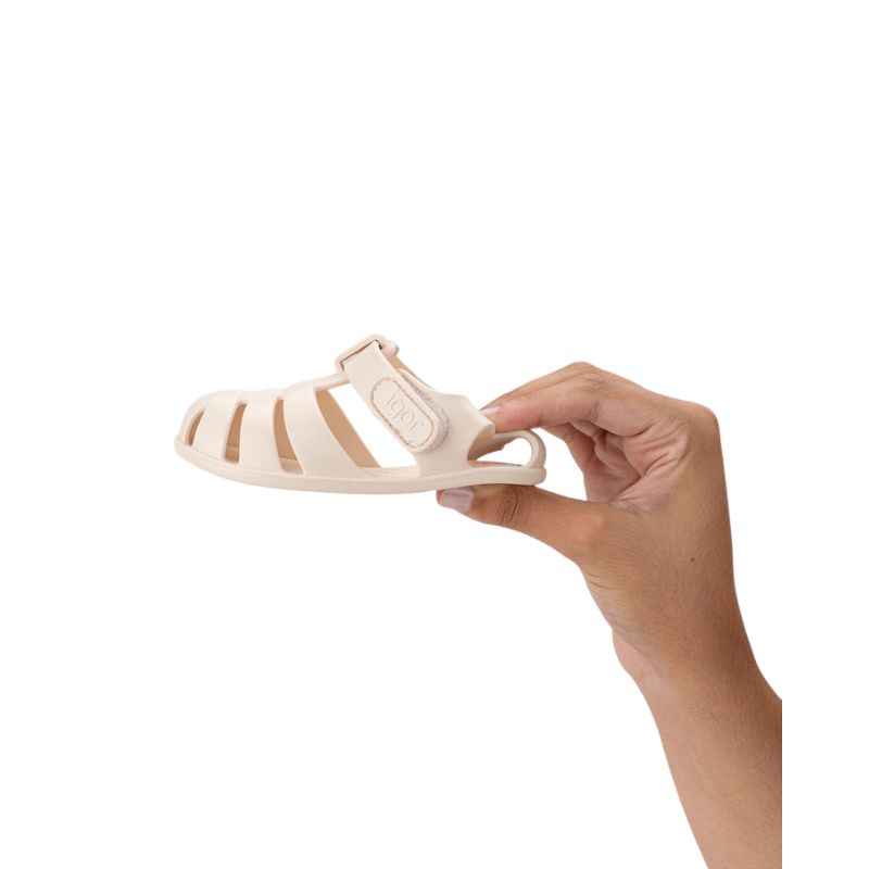 Cangrejera diseñada en concepto barefoot medium, cero drop, flexible y blandita, fabricada con al menos un 50% de pvc reciclado libre de ftalatos y cierre adherente.