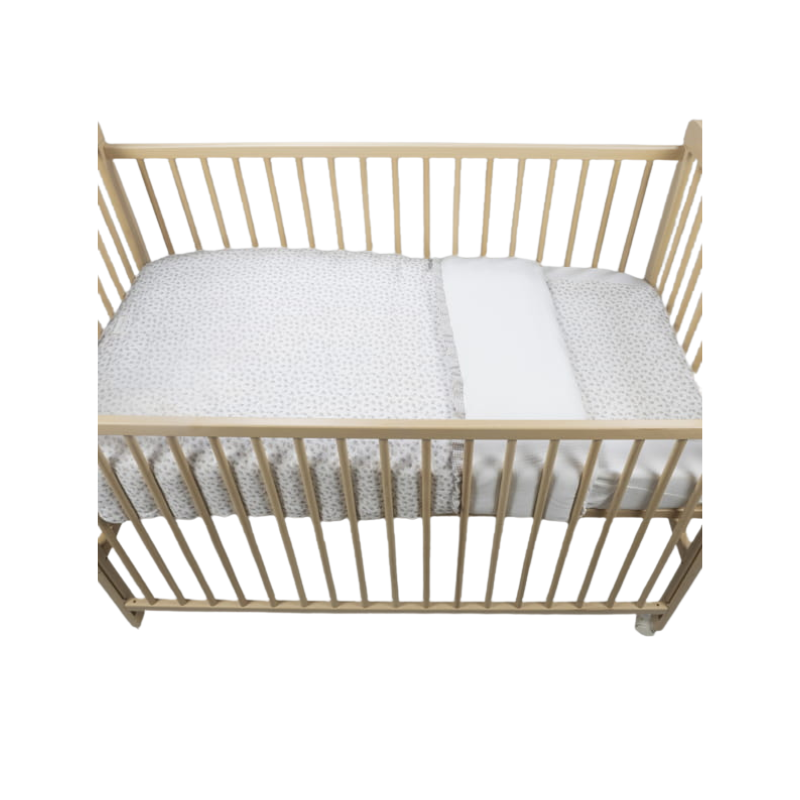 Set completo para cuna de 120×60 cm Little Bloom Vichy gris de Pasito a Pasito: edredón, funda, sábana bajera y almohada. Prepara el nido perfecto para tu bebé con el set completo de ropa de cuna 120×60 cm de la adorable colección Little Bloom de Pasito a Pasito. Este conjunto todo en uno ha sido cuidadosamente diseñado para ofrecer el máximo confort, seguridad y estilo en la habitación de tu pequeño, cumpliendo con la estricta normativa EN-16780 para tu tranquilidad. El set incluye: funda de edredón y edredón (relleno), ambos confeccionados en 100% algodón de alta calidad, garantizan una suavidad inigualable y una transpirabilidad óptima. El edredón proporciona la calidez necesaria para un sueño confortable, mientras que la funda, con el encantador estampado vichy en tonos grises, añade un toque de dulzura y elegancia a la cuna. Sábana bajera ajustable de muselina 100% algodón, un elemento esencial para el descanso del bebé.