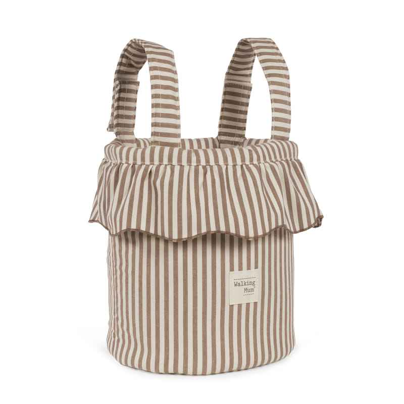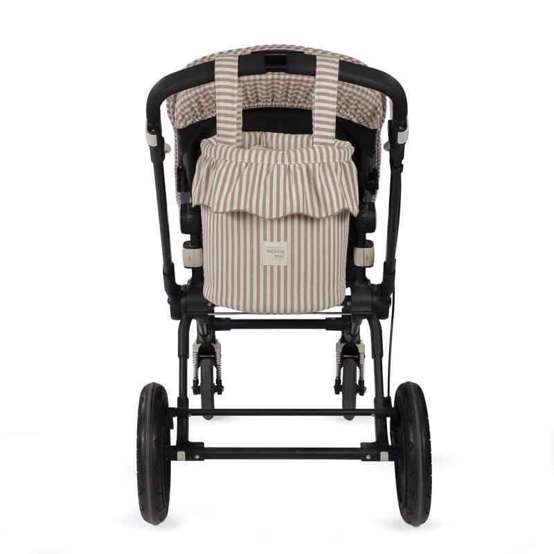 La bolsa bucket Praliné Rayas Moka es el accesorio perfecto para acompañar cada paseo con estilo y funcionalidad. Su delicado estampado de rayas en tono moka aporta un aire fresco, natural y atemporal, ideal para combinar con cualquier carrito. Con un formato tipo cubo muy práctico, esta bolsa es perfecta para llevar lo imprescindible del bebé siempre a mano: pañales, muselina, biberón o pequeños accesorios.