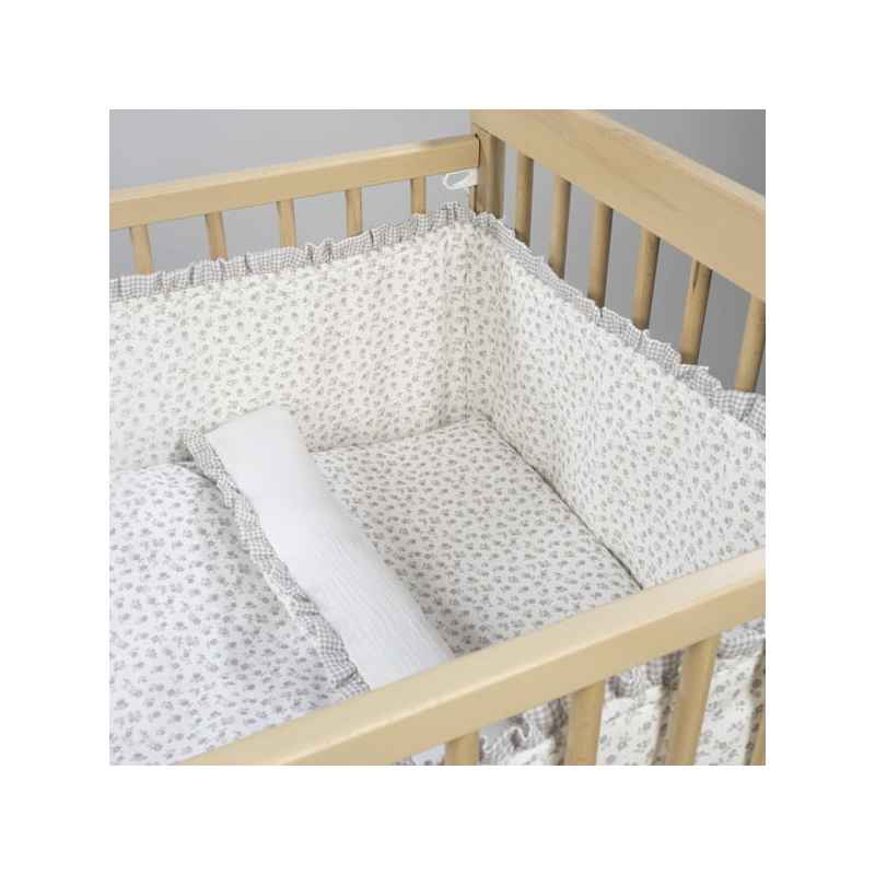 Protector para cuna de 120×60 cm Pasito a Pasito Little Bloom Flor gris – ¡Seguridad y dulzura para el descanso de tu bebé! Asegura un entorno de sueño seguro y acogedor para tu bebé con el delicado protector de cuna de la exclusiva colección Little Bloom de Pasito a Pasito.